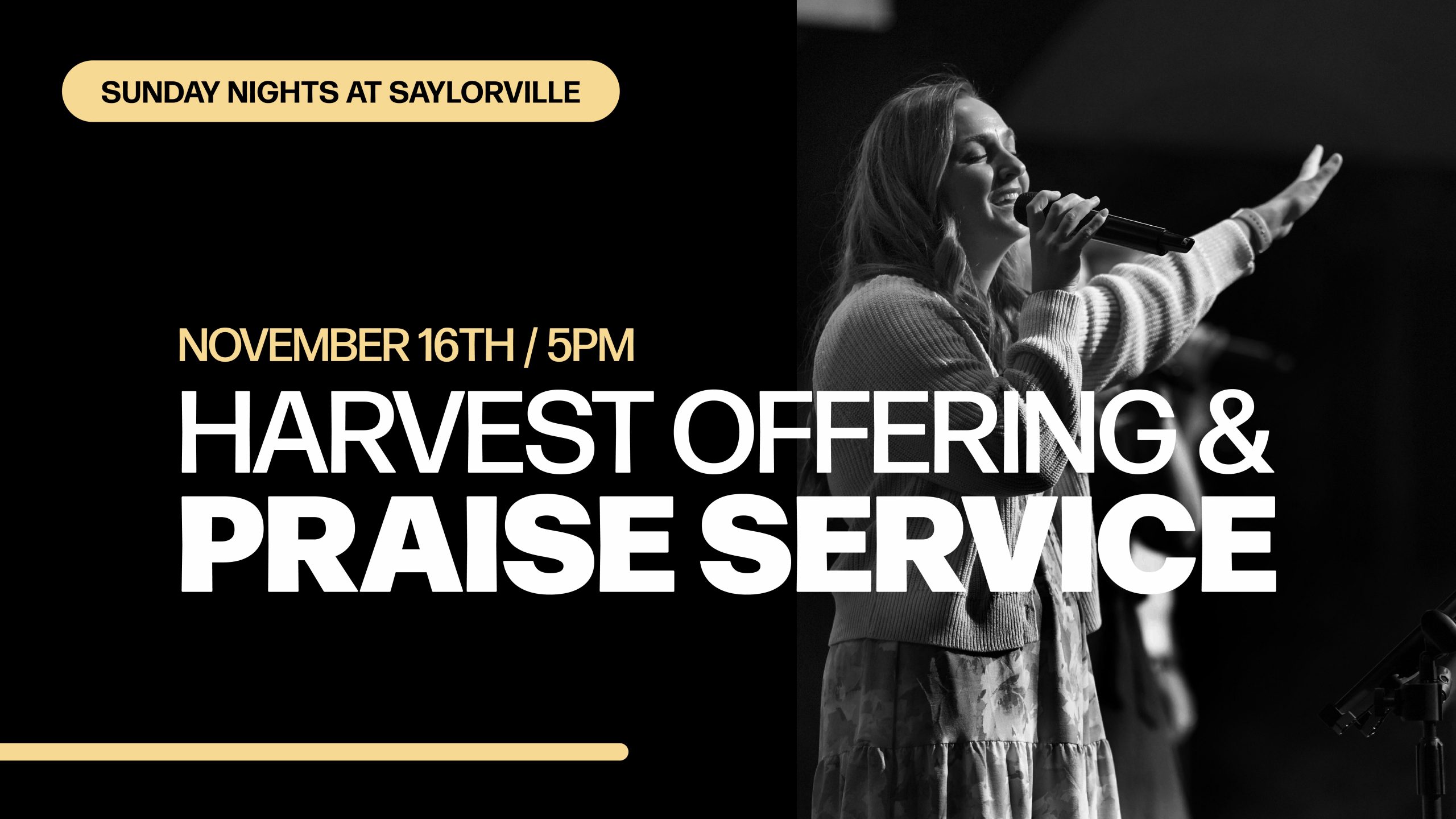 Join us on Sunday, November 16th at 5:00pm for our Harvest Offering and Praise Service as we worship the Lord in song and testimony. We will also be taking a special offering to go toward the start up costs for the newest church plant with Rob and Holly Pearson as well as the finishing touches…